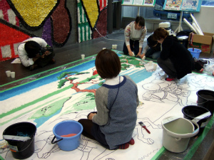 | 犬猫の糞尿で汚染されている公園や砂場の砂と違って、カラフルで清潔な色砂として屋外だけではなく、室内でも、どこでも御使用戴けます。(子供は砂遊びが大好きです)。 |