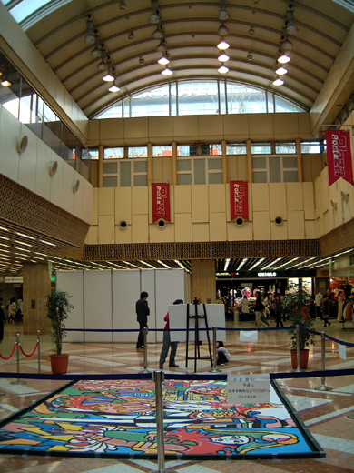 京都駅前地下街ポルタにて、サンドアート&イタリアンカーニバルが開催されました。 弊社カラーサンドを使用して、イタリア人アーティストの原画を元に、舞妓やイタリアのマスクパレードを描いた5m×3.5mのカラフルな一枚絵が展示されました。 又、本場ヴェネツィアのマスケラが地下街をパレードし、観光客の喝采を浴びました。 |