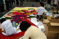 スペインのバルセロナに於いて、ヨーロッパ・アジア・南米などより、30組を超えるアーティストが集う、インフィオラータの世界大会に日本代表として招待されました。 各国独自の手法で作品を創作しましたが、日本代表は、弊社カラーサンドと花びらを使用して、錦絵をモチーフとした作品を創作し、翌日の地元新聞記事で取り上げられるなど、好評を博しました。 |