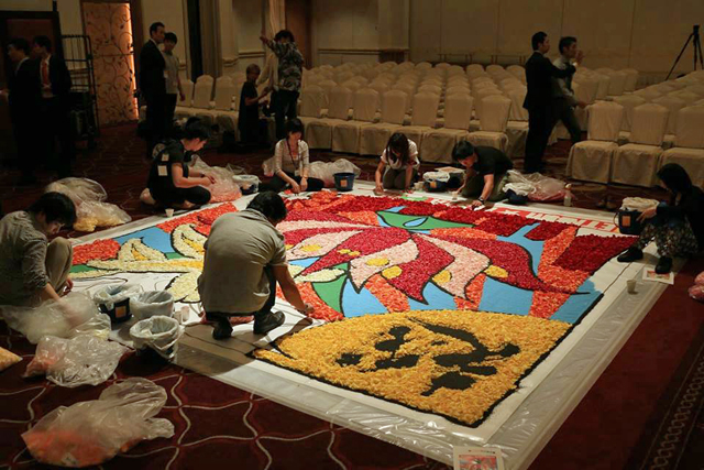 と、ベトナムと神奈川で生産されたバラの花びらを使用して、花絵を完成させました。