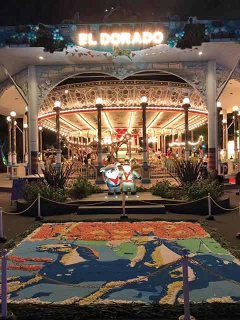 東京都練馬区のとしまえんに於いて、弊社カラーサンドと花びらを使用して、フラワーピース インフィオラータが開催されました。 「平和と美の親善大使」ミス・インターナショナルの代表7名の方と今年誕生110周年を迎える回転木馬「エルドラド」をモチーフにした花絵を作成しました。 |