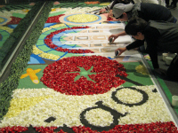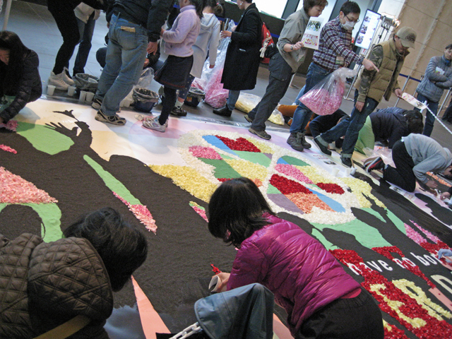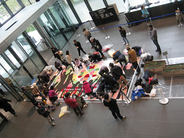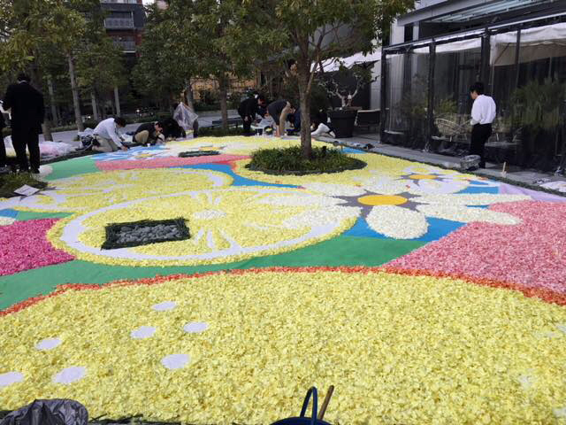 東京都千代田区にある東京ガーデンテラス紀尾井町に於いて、国内最大級の花のアートイベントである東京インフィオラータ2018のオープニングセレモニーが開催されました。 弊社カラーサンドと6万本のカーネーションの花びらを使用して、色とりどりの花絵を作成致しました。 又、3月25日(日)には「インフィオラータワークショップ」も開催されました。 |