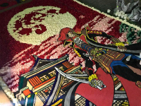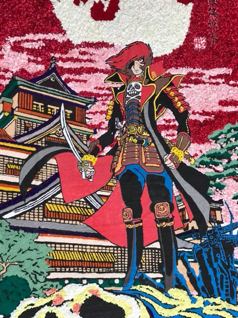 | スペインのエルチェ・デ・ラ・シエラで、インフィオラータ世界大会が開催されました。弊社カラーサンドと花びらを使用して、松本零士さんが描いた浮世絵「侍ハーロックと熊本城」を創作しました。 |