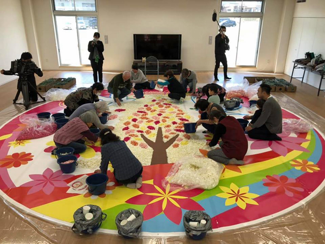 と8,000本のカーネーションの花びらを使用し、双葉町の皆様と追悼の花絵を創りました。
