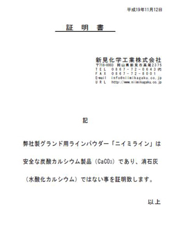 又、安全な炭酸カルシウムの証明書が必要な方は右記のファイルをダウンロードして下さい。