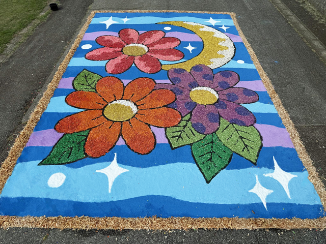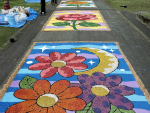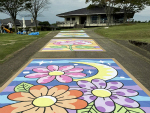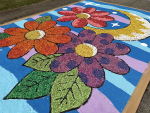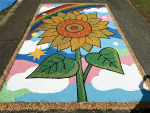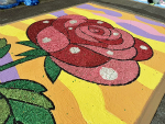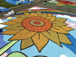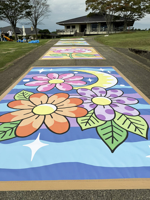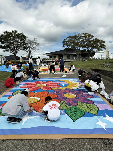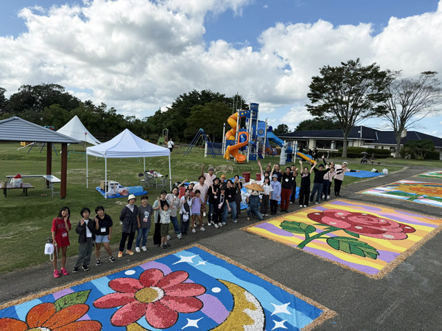 石川県鳳珠郡能登町のやなぎだ植物公園に於いて、インフィオラータが開催されました。 弊社カラーサンドと震災や洪水被害で出た廃材を色付け加工したウッドチップを使用して、60名の能登町民の方々と「お花」をテーマにした4枚の花絵(100平米)を創作しました。 |