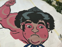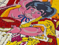 シンガポールでフラワーカーペットが開催されました。 日本代表として、弊社カラーサンドと花びらを使用して、金太郎の豆まきをモチーフにした直径3.5mの花歌舞伎の作品を描きました。 |