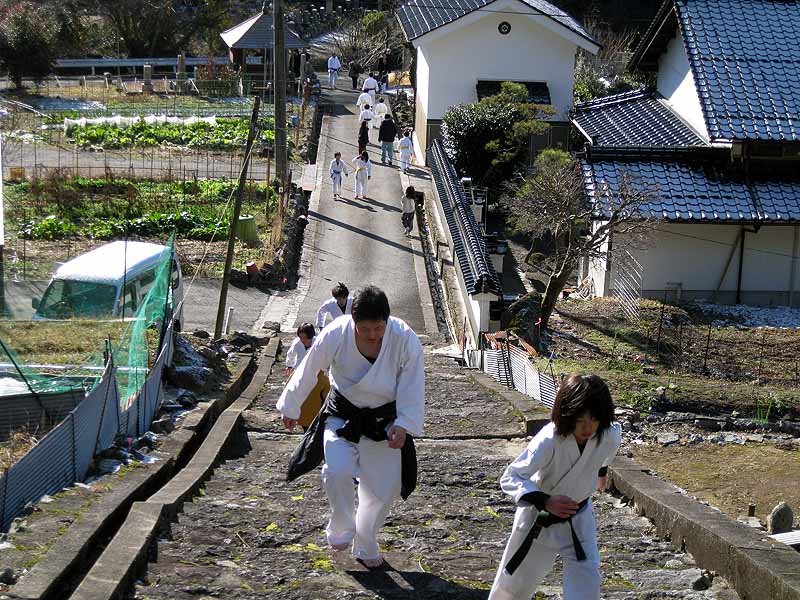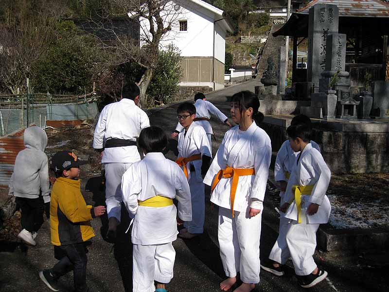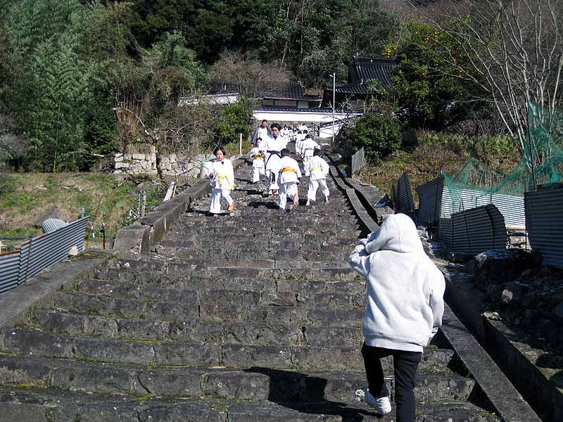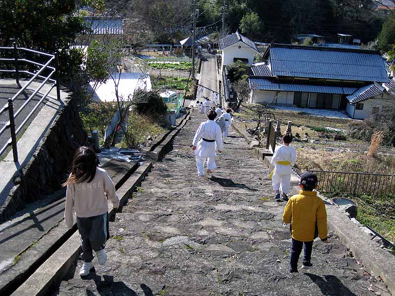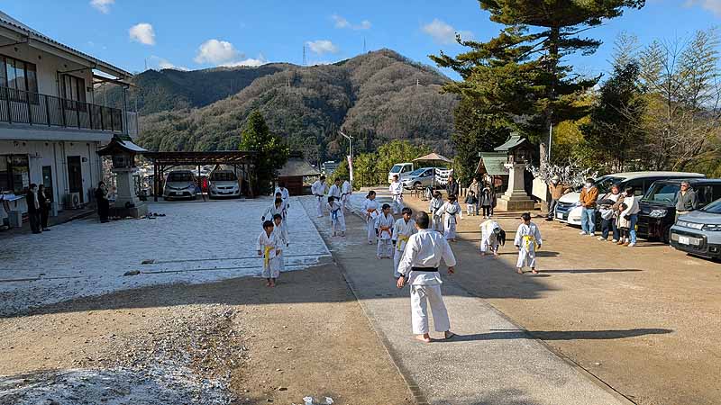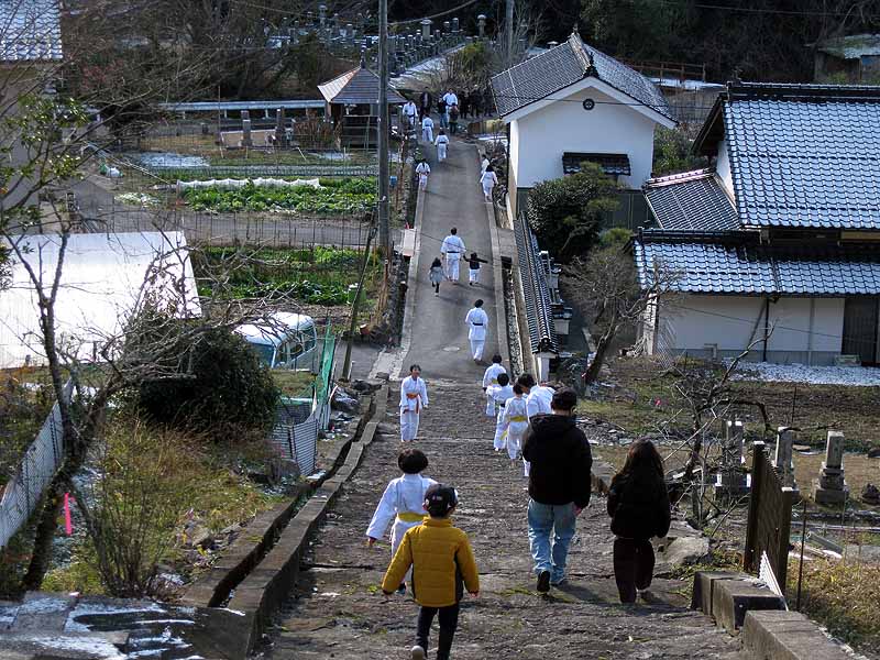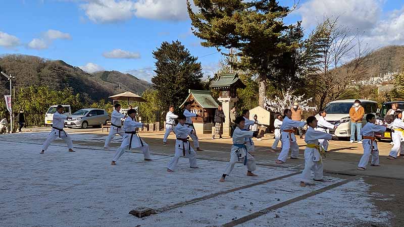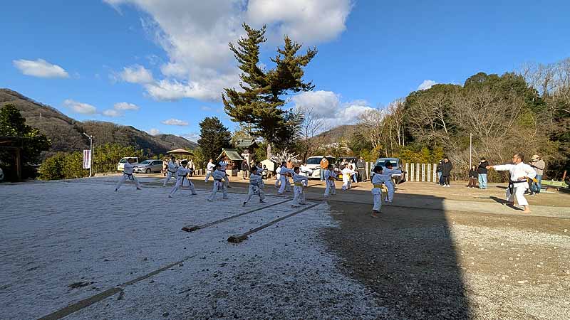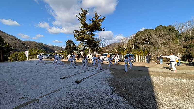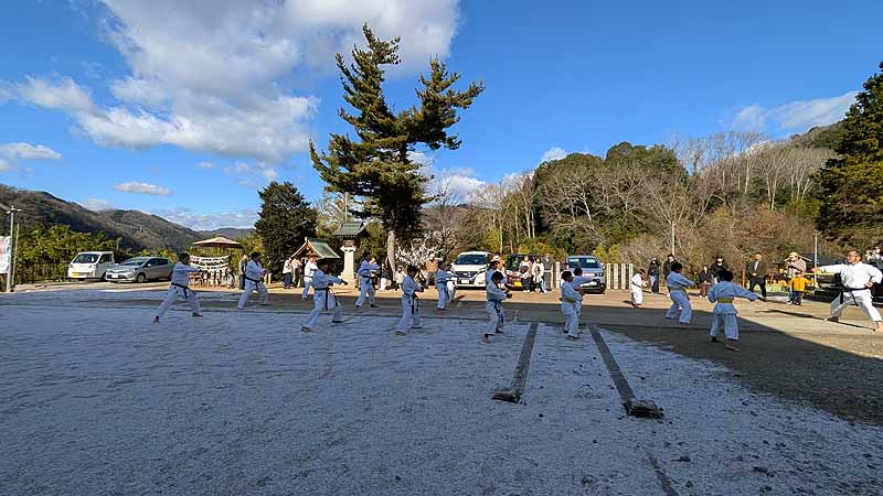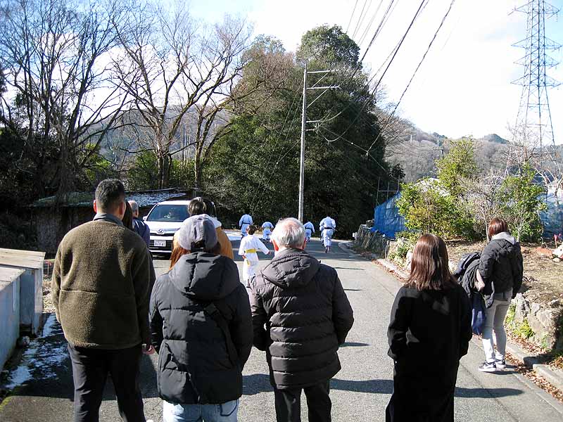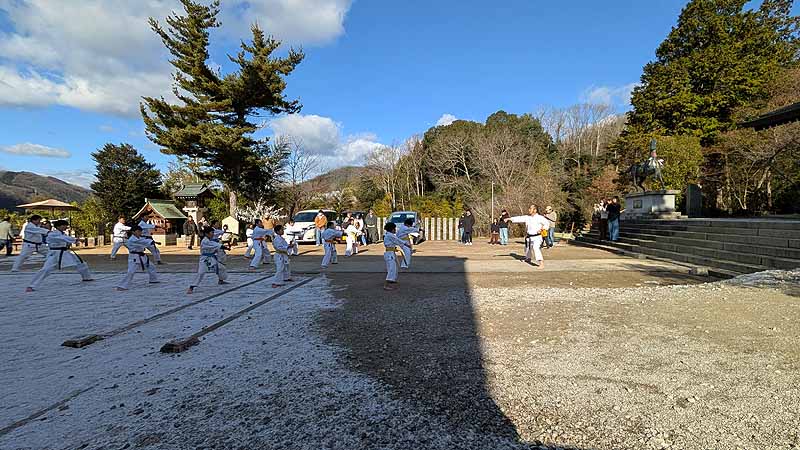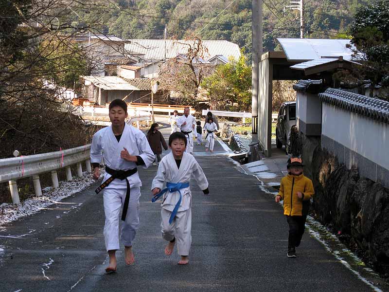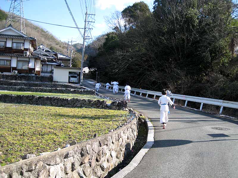 一年の無事を祈願して戴いた後、境内で初稽古(突きと基本形)をし、その後、ランニングを行った。