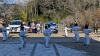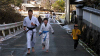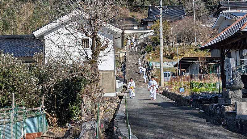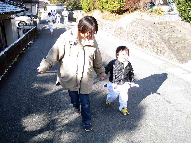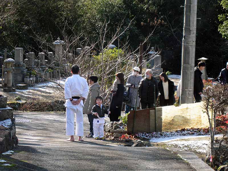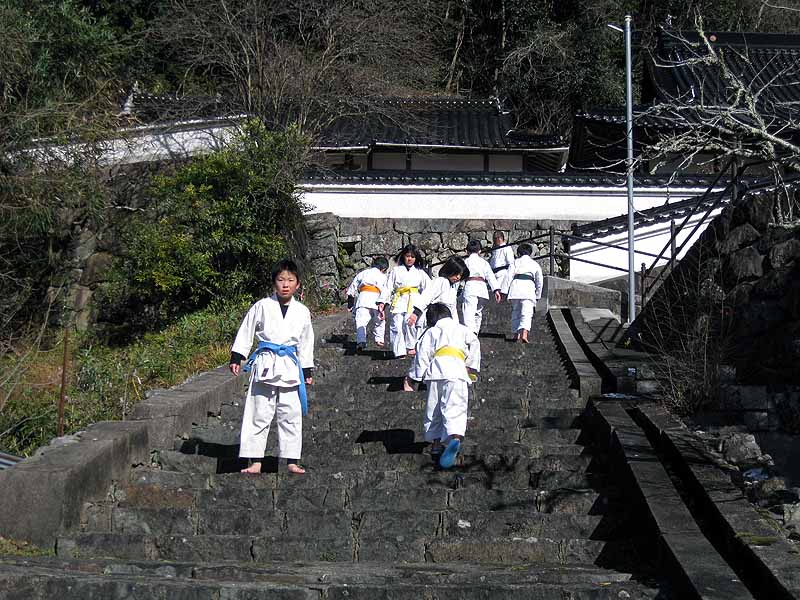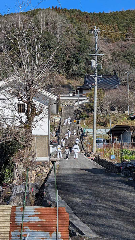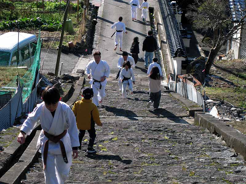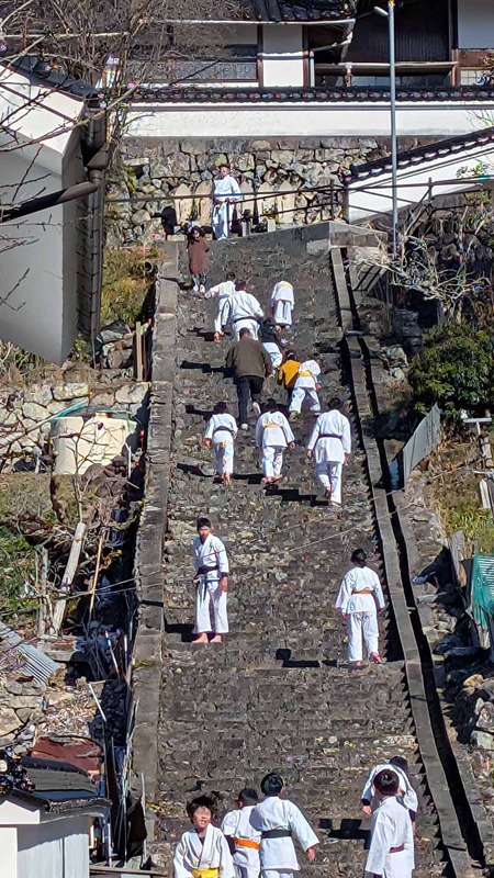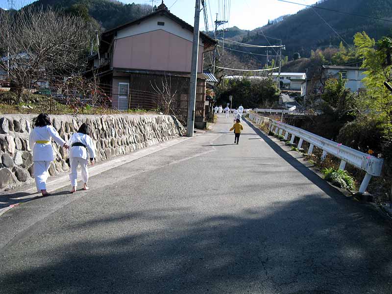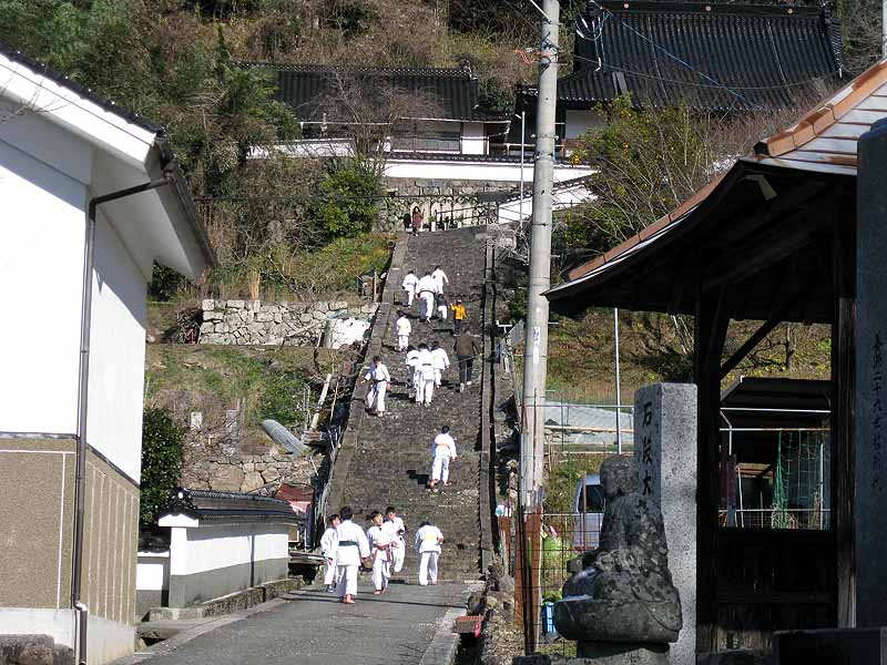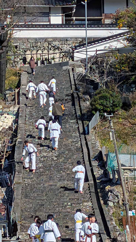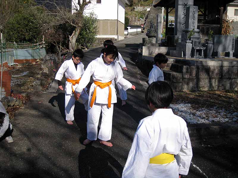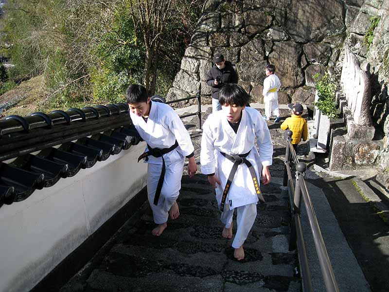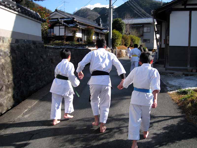 一年の無事を祈願して戴いた後、境内で初稽古(突きと基本形)をし、その後、ランニングを行った。