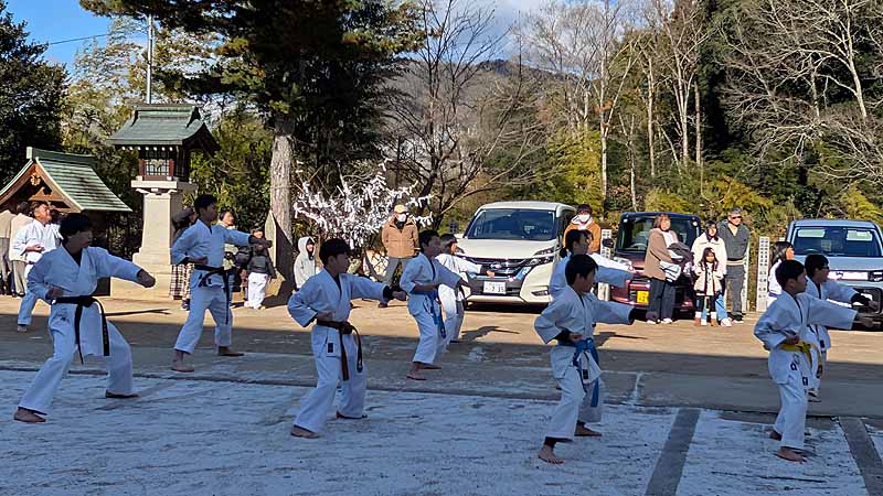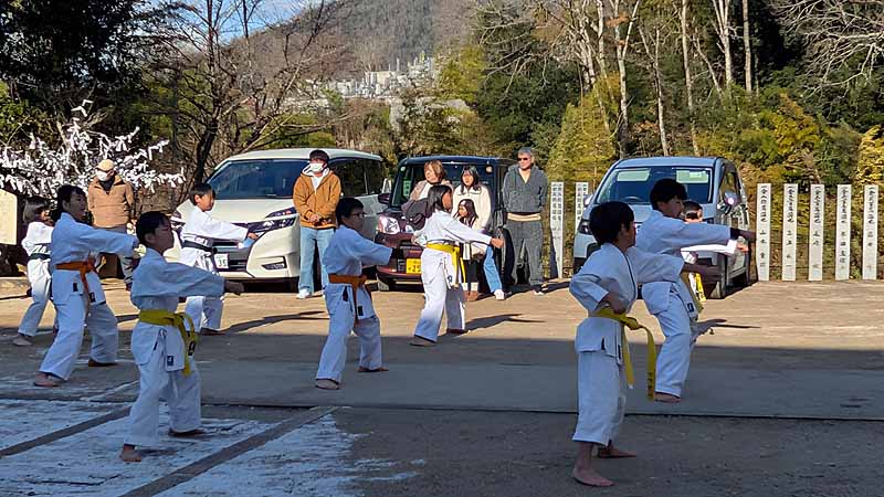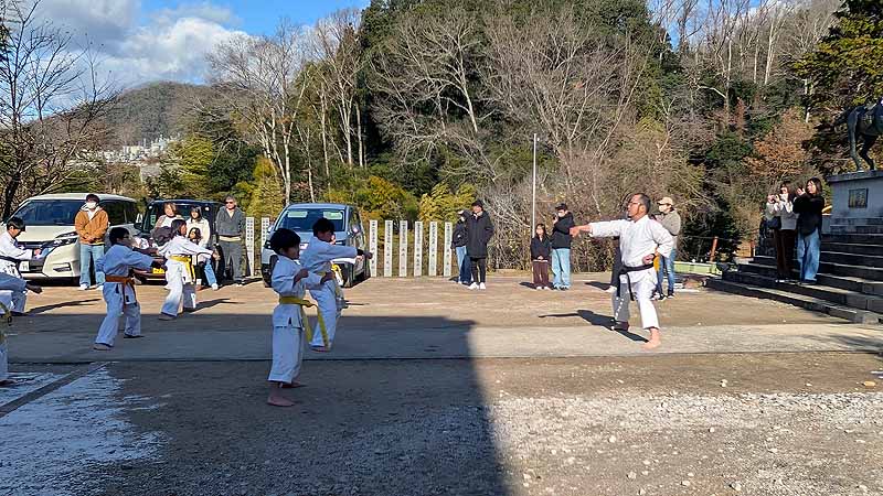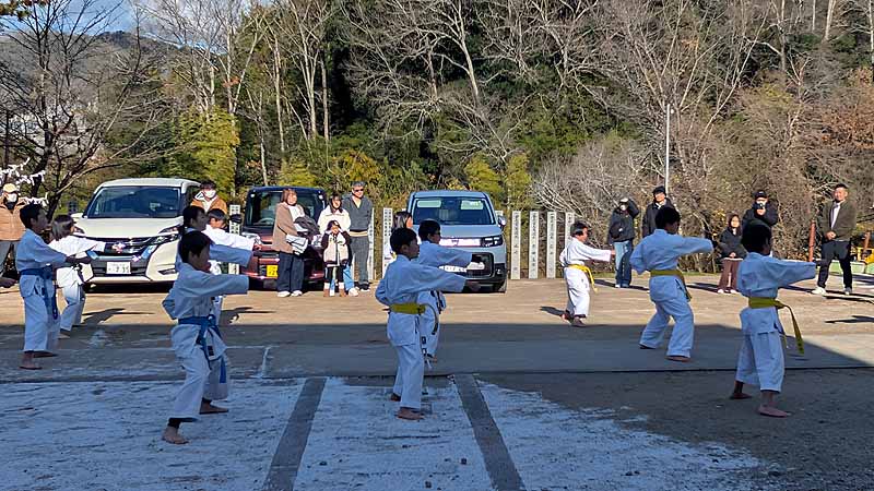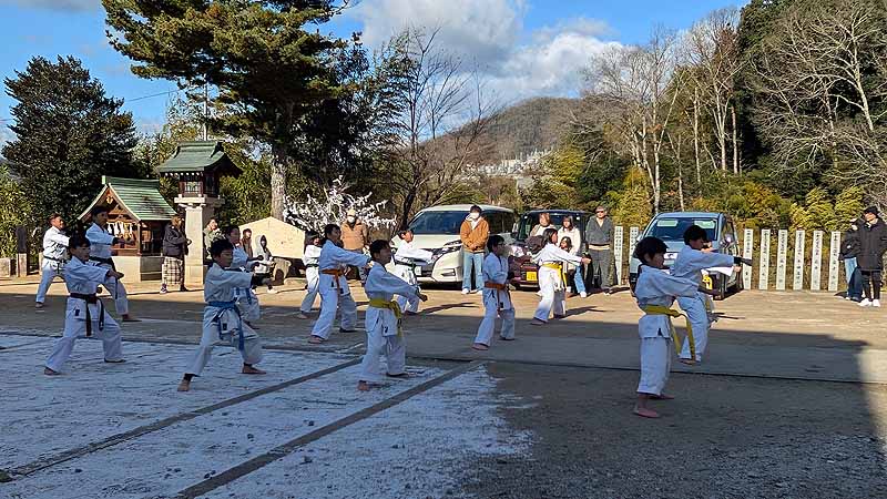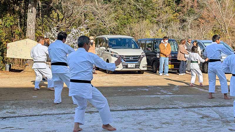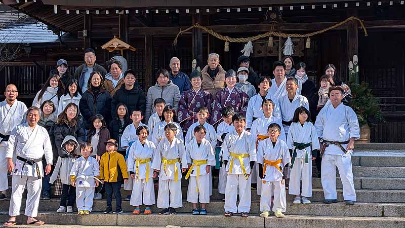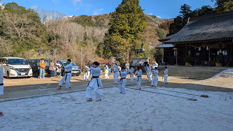 新見船川八幡宮にて、毎年恒例の参拝と初稽古を行った。