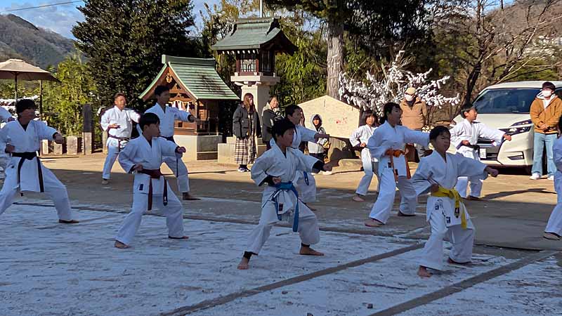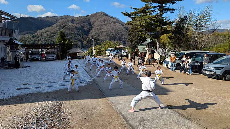 新見船川八幡宮にて、毎年恒例の参拝と初稽古を行った。