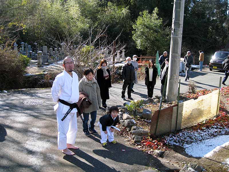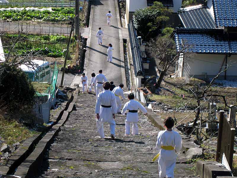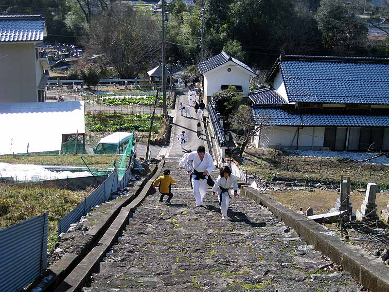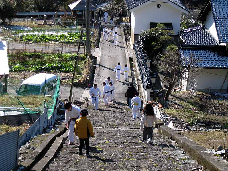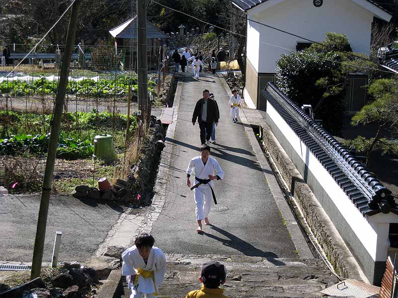 一年の無事を祈願して戴いた後、境内で初稽古(突きと基本形)をし、その後、ランニングを行った。
